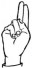 На ћирилици написано ИВА МЕЧАНИН састоји се из 10 слова [?]. Исписано ћириличном једноручном азбуком за глувонеме: